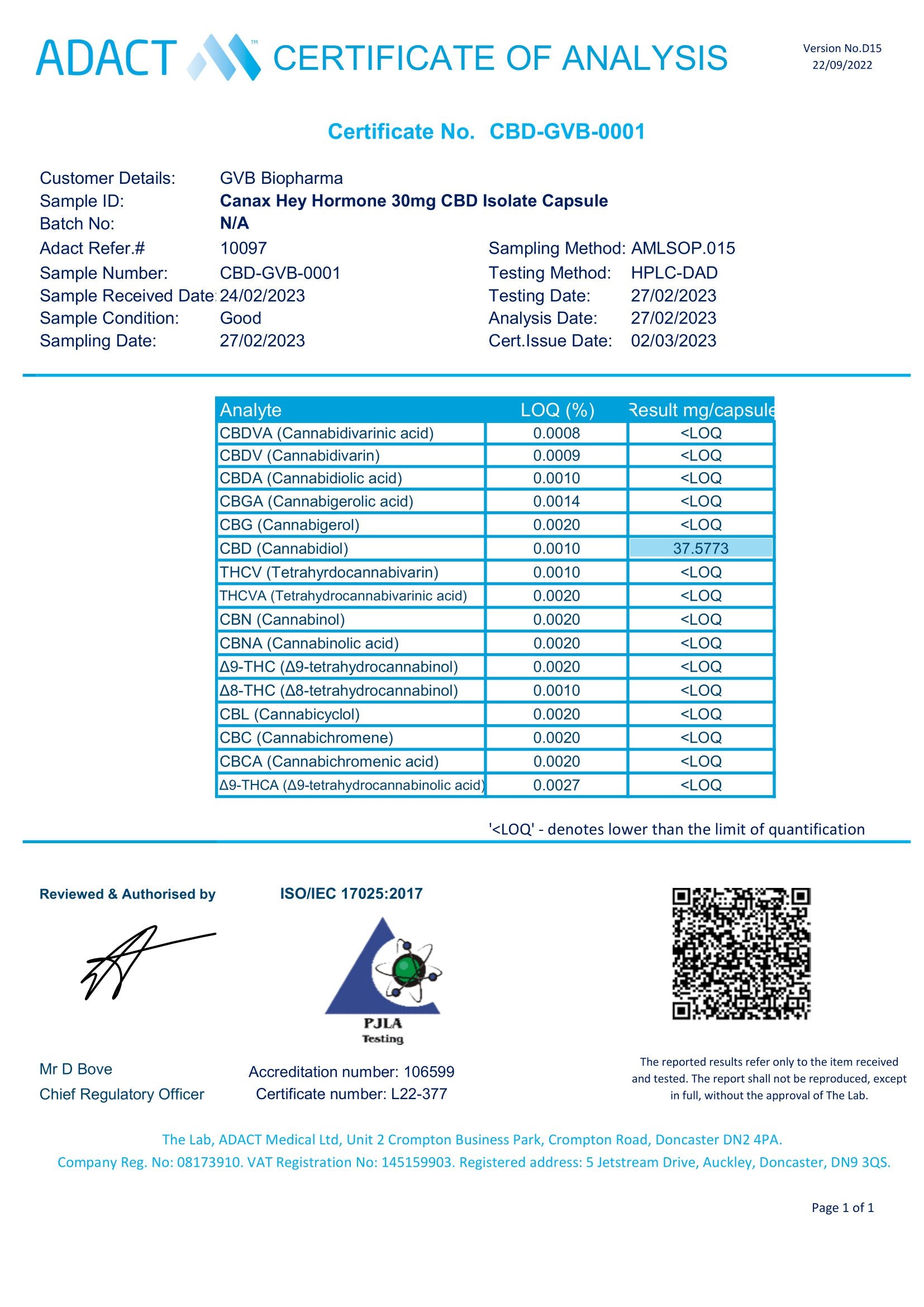 Hey Hormones: get your daily dose of CBD and antioxidants, plus adaptogens for optimal hormone balance. Canax’s capsules are conveniently designed for one-a-day dosing and you can even open it up and stir it into a glass of water for added ease. With powerful ingredients like these, it’s no wonder Hey Hormones has become a customer favourite!