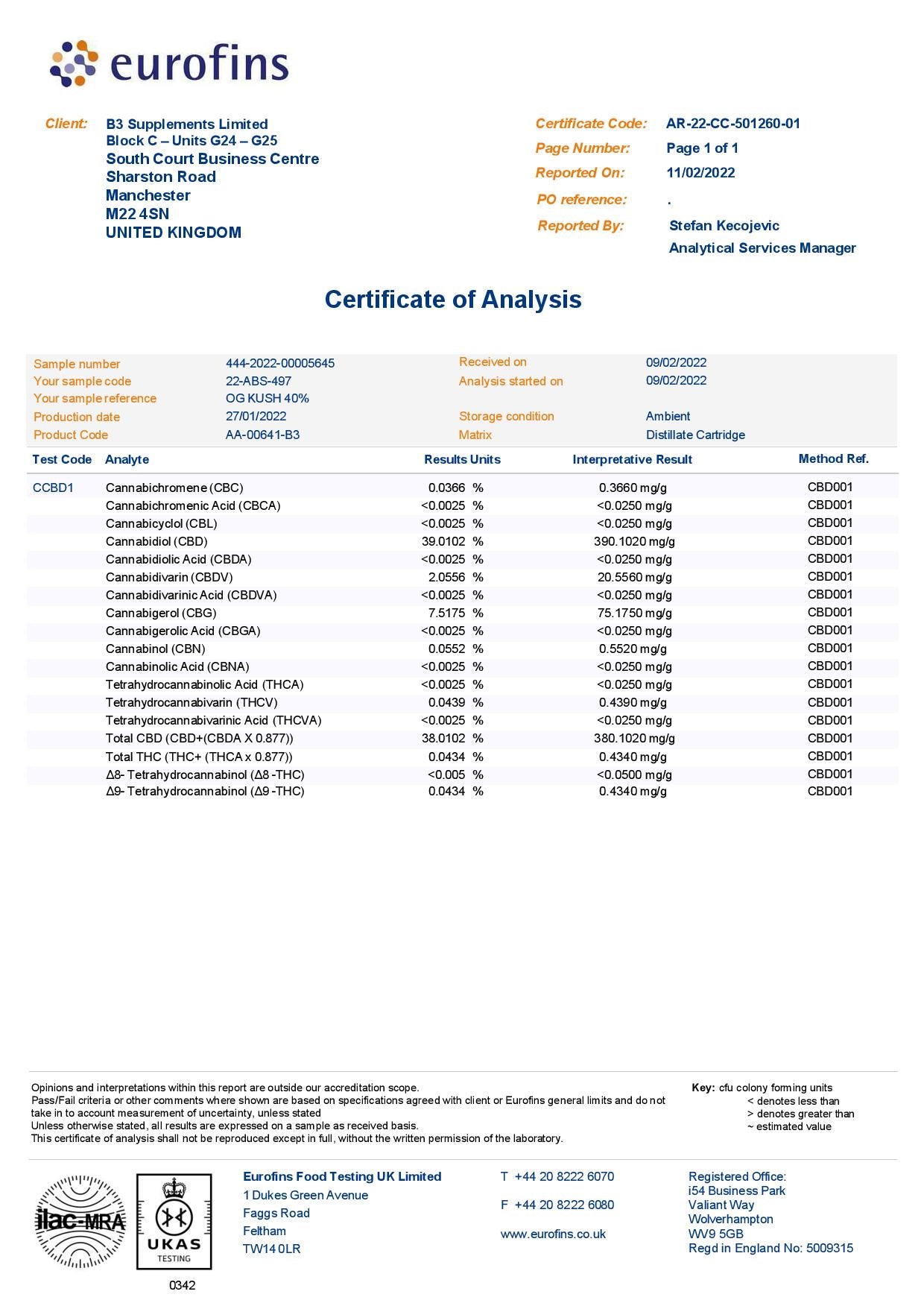 - CBG: 7.5% (known for anti-inflammatory, also contains antibacterial properties)