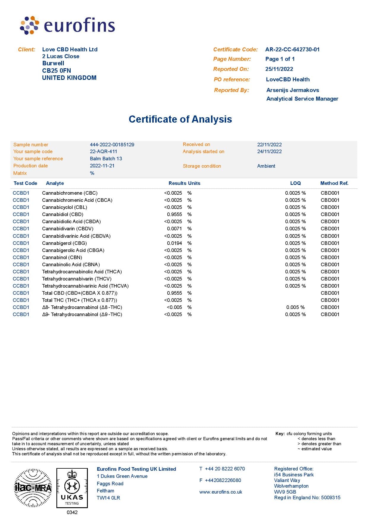 The Love CBD 1000mg CBD Balm is a multi-purpose cannabis-infused skin balm that comes in a sizable 100g jar. As well as containing the CBD-laden extracts of cannabis, this 1000mg CBD balm also contains hemp seed oil and terpenes, which all meld together into a wonderful, cannabis-rich CBD balm. The balm makes a wonderful massage aid and is well suited for both sports and physio purposes as a muscle balm or in a more sensual and relaxing setting to help unwind after a busy day. Because this CBD balm contains ingredients including coconut oil and shea butter, it also works really well as a general purpose skin moisturiser and conditioner which is gentle on most skin types. The Love CBD balm has a fresh and slightly citrusy aroma as a result of the terpenes that are naturally occurring within the broad spectrum cannabis extract that is used within the product. With a near endless list of uses, you’ll find that a little Love CBD Balm goes a long way. Love CBD’s cannabis is grown on farms that do not use pesticides, herbicides, artificial fertilisers or harmful chemicals.