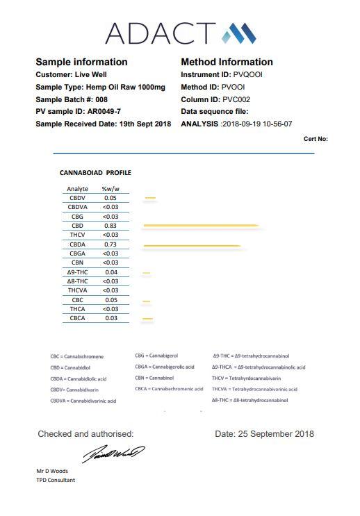 LV Well CBD Raw Oral 1000mg is 1000mg of raw full spectrum CBD extract paste dissolved in a carrier fluid. We have improved the quality of the extract and the finished product through using Virgin Hemp Oil rather than VG and PG. This product is flavoured with a cookie flavouring.