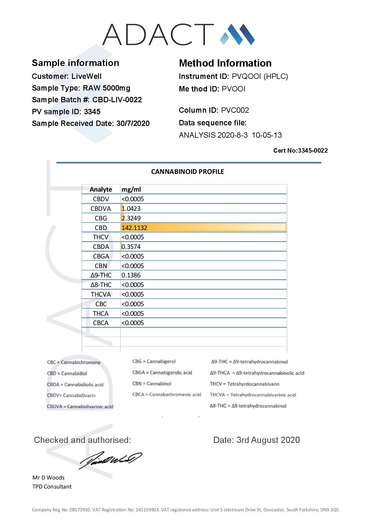 Cherry Flavour. LVWell CBD Raw Oral 5000mg contains a specially selected blend of extracts and distillates dissolved in a carrier fluid. This new version of the original Raw product contains double the amount of CBD as the expertly designed and blended extract contains 30% CBD rather than the original 15%, also in this product there are over 100 popular minor cannabinoids including CBC and CBG.