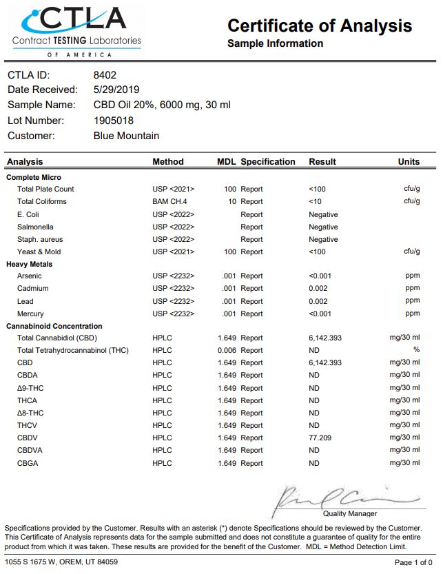 Ingredients: Organic MCT Oil, Broad Spectrum Terpenes, cannabidiol (CBD)