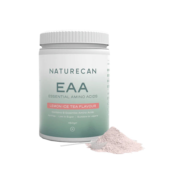 Amino acids are the building blocks of protein and muscle. When protein is consumed as food or a supplement, it’s broken down into individual amino acids, which are then used to help the body to grow and function. EAAs are amino acids that can’t be produced by the body, and must be obtained from foods that are complete protein sources, such as eggs, meat, soy and buckwheat. Essential amino acids offer multiple health benefits, particularly if taken in concentrated doses from an EAA supplement. Naturecan’s premium EAA powder contains the protein key for building and maintaining muscle and keeping bones in good condition. Low in sugar and fat-free, it’s a convenient way to get the amino acids you need while keeping your training on track