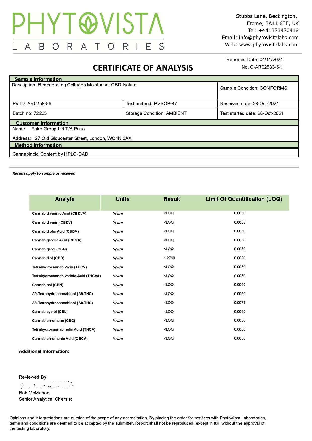 Ingredients: Aqua, aloe vera juice (aloe barbadensis), CBD isolate (500mg), cetearyl alcohol, polysorbate 60, vegetable glycerin, sunflower seed oil (helianthus annuus), olive oil (olea europaea), coconut oil (cocos nucifera), shea butter (butyrospermum parkii), hydrolysed collagen, apricot kernel oil (prunus armeniaca), zinc oxide, oat silk (avena sativa), vitamin E (tocopherol), oatmeal (avena sativa), xanthan gum, phenoxyethanol, ethylhexylglycerin, Matrixyl 3000.