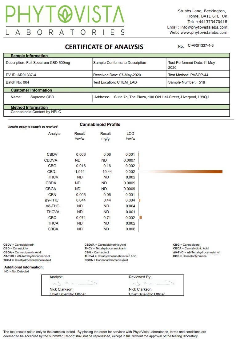 Suited for beginners looking to try CBD products, Supreme CBD’s own full-spectrum CBD oils are extracted using a specialist CO2 process – the gold standard in extraction – that has been developed to isolate and remove any unwanted compounds, while creating the maximum potency level of phytocannabinoids. Cutting edge technology is employed to ensure a full-spectrum oil, that includes both high levels of CBD, cannabinoids and terpenes and preserves the highest levels of purity across the compounds. They include components including phytocannabinoids, flavonoids and terpenes.
